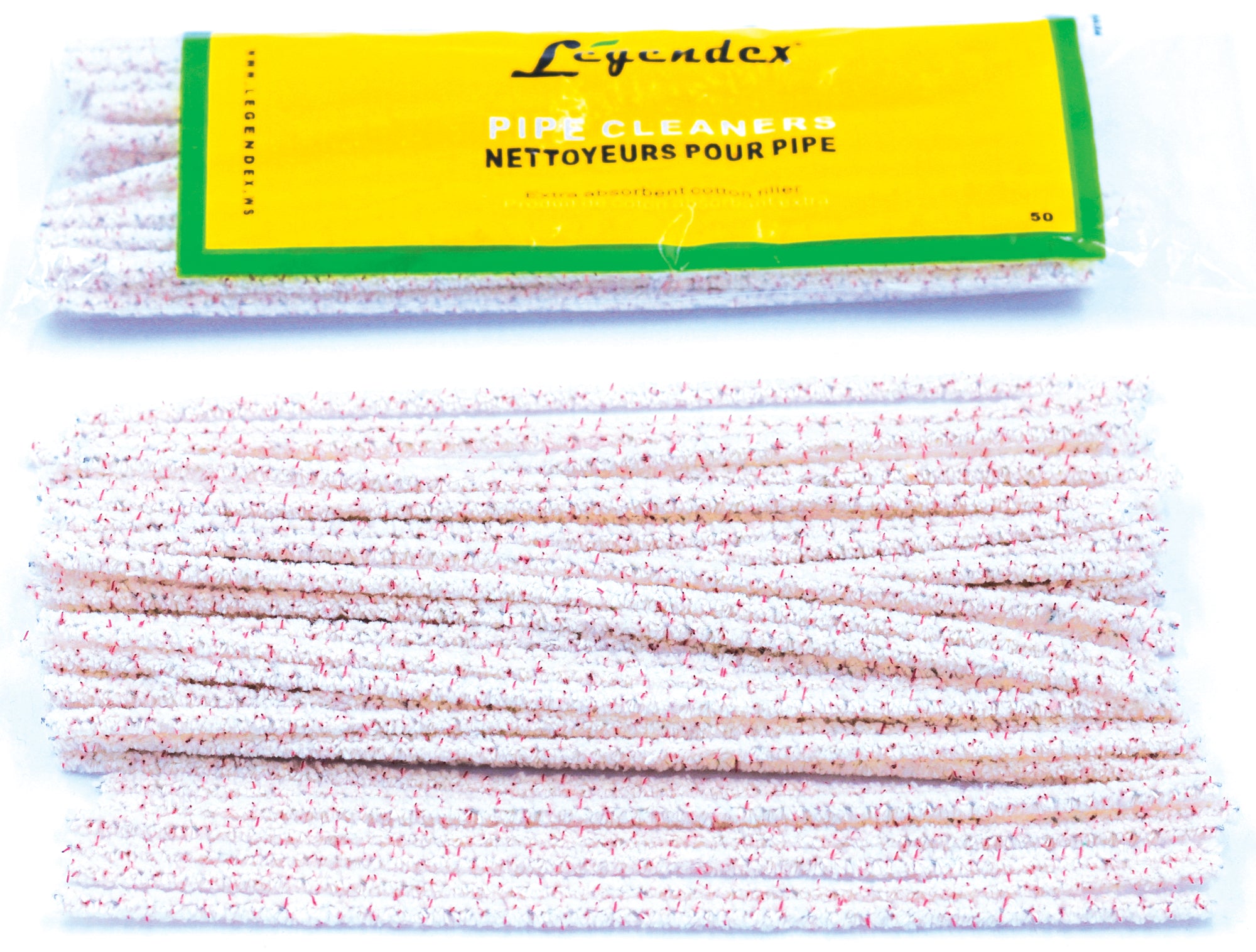 Cardboard box, pouch and 2 bags of Legendex® 50'sX180 mm pipe cleaners (Colourful soft and White bristle) included.